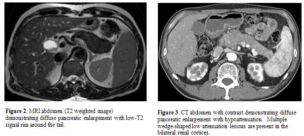 - Takahashi N, Kawashima A, Fletcher JG, and Chari ST. Renal involvement in patients with autoimmune pancreatitis: CT and MR imaging findings. Radiology 242: 791-801, 2007. PMID: 17229877